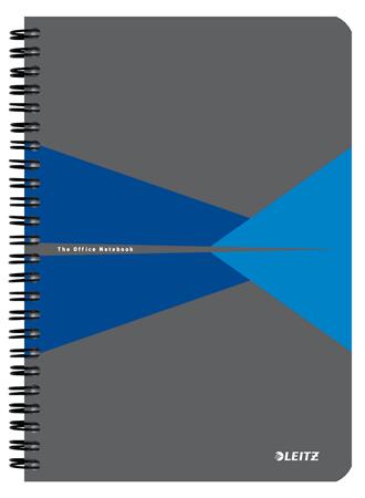 Spirálfüzet, A5, kockás, 90 lap, PP borító, LEITZ "Office", szürke-kék