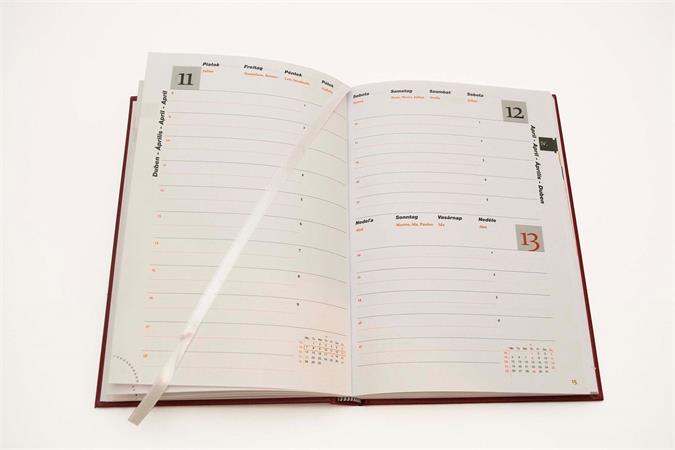 A/5 napi határidő napló, mely elegáns fehér papíron 2 színnyomással segít a napi teendők megtervezésében.