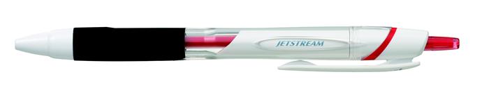 Golyóstoll, 0,35 mm, nyomógombos, fehér tolltest, UNI "SXN-155 Jetstream", piros