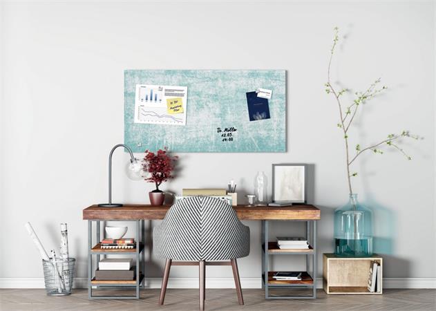 KezdőlapTechnológiaPrezentációVizuál táblákMágneses üvegtábla, 91x46x1,5 cm, SIGEL "Artverum® ", türkizkék fal mintázat, matt