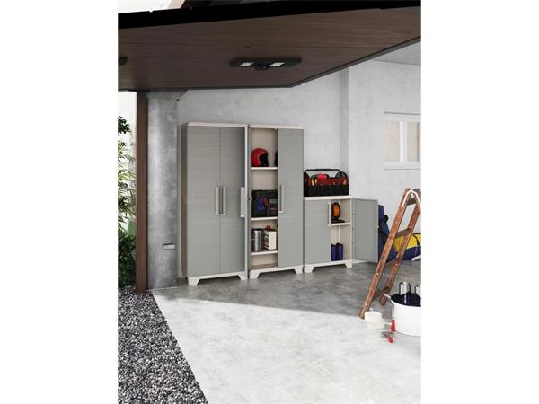 Szerszámtároló szekrény, magas, műanyag, KETER "Linear Wood", bézs